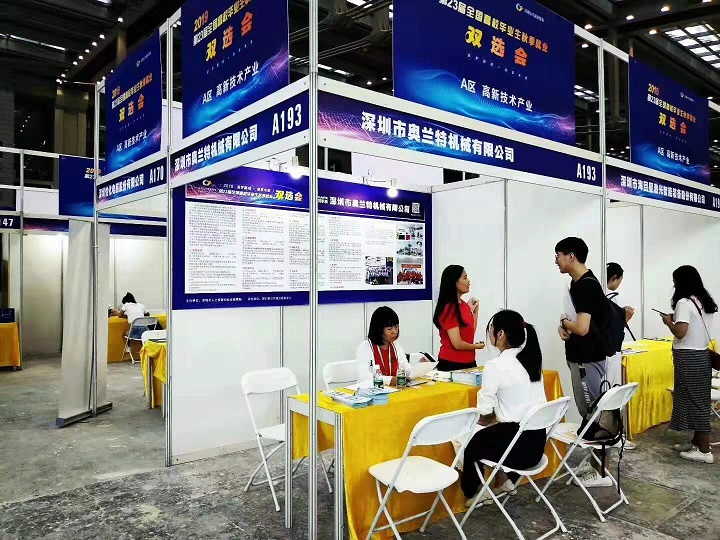 2019年第二十三屆全國高校畢業生秋季就業雙選會(以下簡稱“雙選會”)昨天在深圳會展中心1號館舉辦,此次大會由深圳市人力資源和社會保障局主辦、深圳公共就業服務中心承辦。本屆雙選會遴選了650多家知名企業參與現場招聘,深圳市奧蘭特機械有限公司有幸參與。奧蘭特機械在將近3000家報名企業中經過篩選獲得展位進行現場招聘也實屬不易,報名企業中奧蘭特企業規模是明顯不占優的,能夠人選可能和提供的企業資料有關,如奧蘭特的企業文化、奧蘭特從事高新技術產品的研發和生產,比較符合深圳政府發展方向。